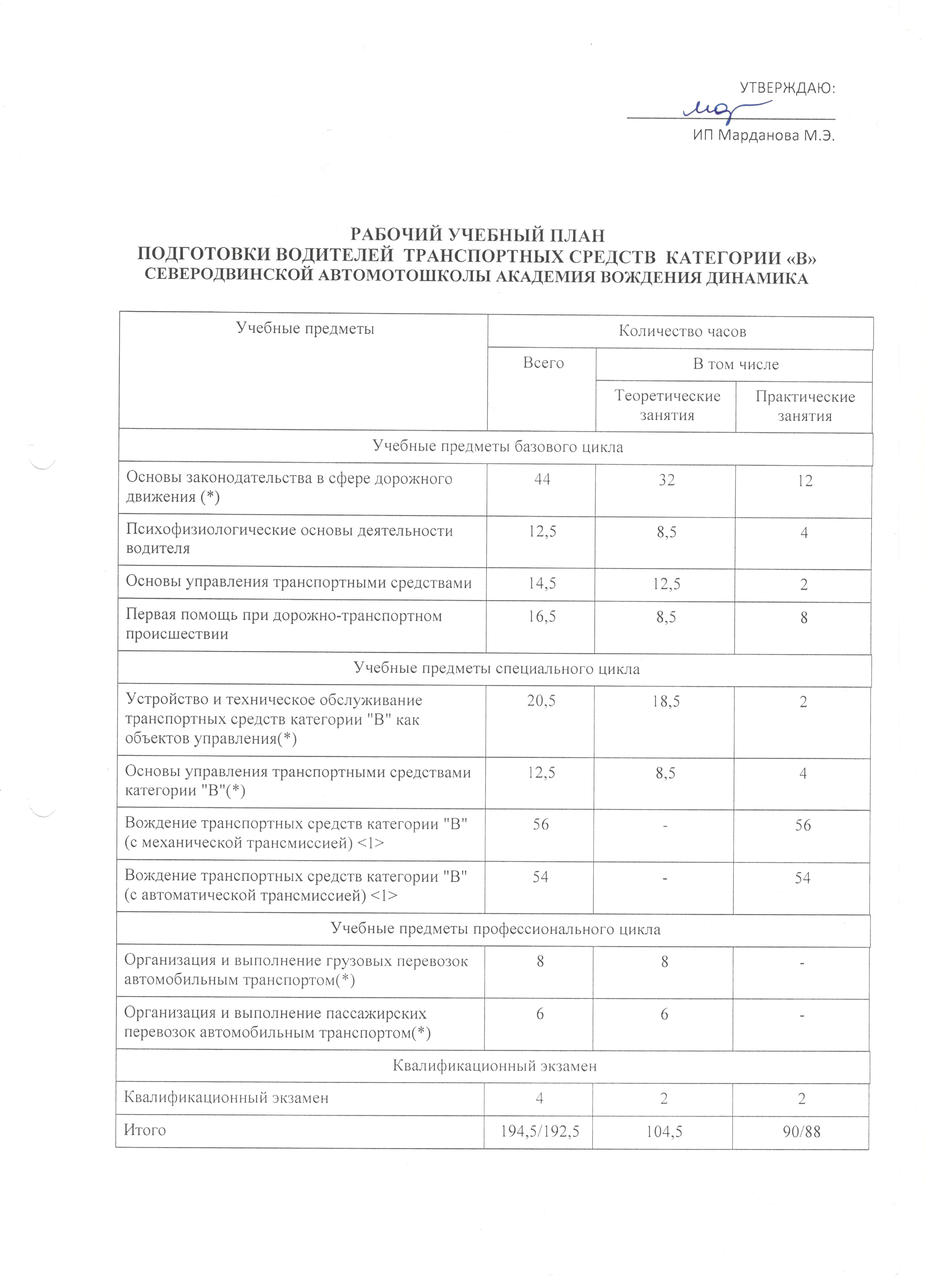 Подготовка водителей ТС категории "В"